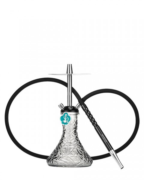 El enganche de la manguera es por clic, sin necesidad de utilizar junta de goma, y su tubo de inmersión tiene una anchura media que da una restricción muy agradable a la fumada. El difusor es regulable y es una cachimba que, además de la cachimba en sí, también incluye: