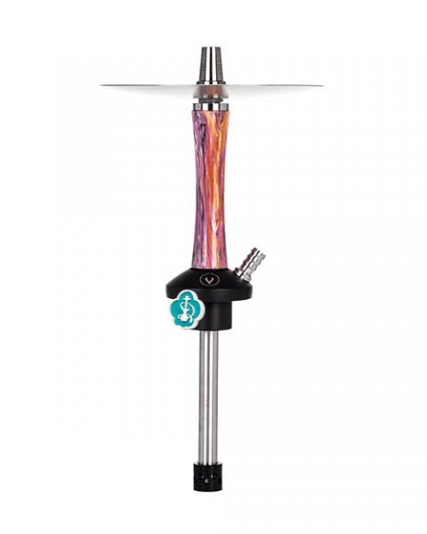 Con un diseño 100% español, la cachimba Diavla Kharma Model Mini está fabricada en acero inoxidable V2A con una cámara de nylon que asegura una resistencia única. No obstante, lo que más destaca estéticamente de esta shisha es su mástil de resina y con un diseño que combina varios colores con un efecto lava.