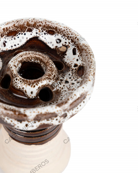 La cazoleta Firebowl EVO es una obra artesanal confeccionada en barro blanco con chamota y con una cocción a alta temperatura. Además de por su esmaltado exclusivo que combina los colores marrón y blanco, esta cazoleta destaca por su peculiar zona de carga, que fusiona la funcionalidad del phunnel y de una cazoleta tradicional.