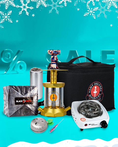 Pack de la cachimba Amy Deluxe Alu Tube S, ¡una de las cachimbas más compactas, minimalistas y prácticas! Esta shisha está fabricada en aluminio y es perfecta para usarla en viajes y, sobre todo, al aire libre gracias a su peso mínimo y a la mochila de transporte que incluye. La conexión de la manguera y el difusor están integrados, por lo que lo único que hay que hacer es enroscar la parte de arriba en la base.